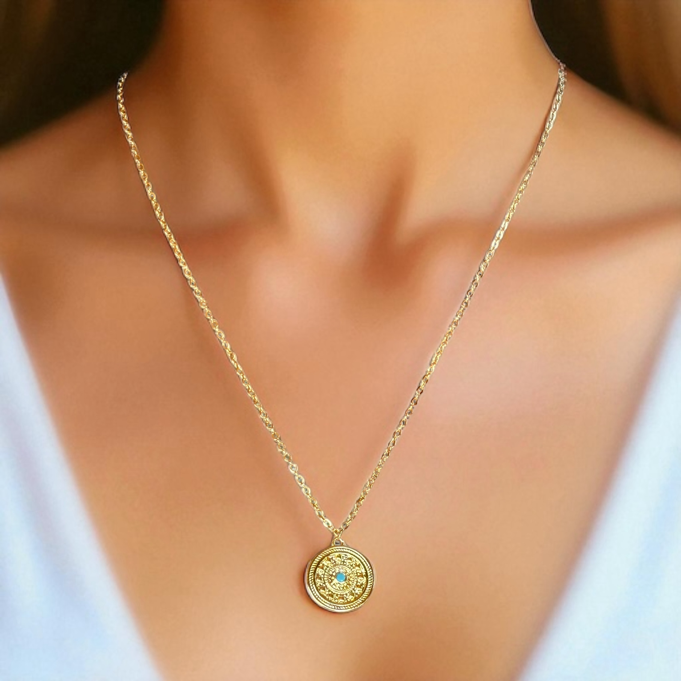 Aqua Core – Turquoise Medallion of Stillness Necklace